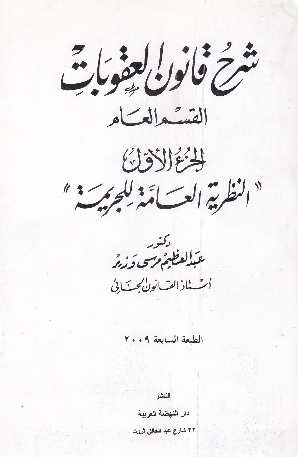 شرح قانون العقوبات - القسم العام - الجزء الأول - النظرية العامة للجريمة